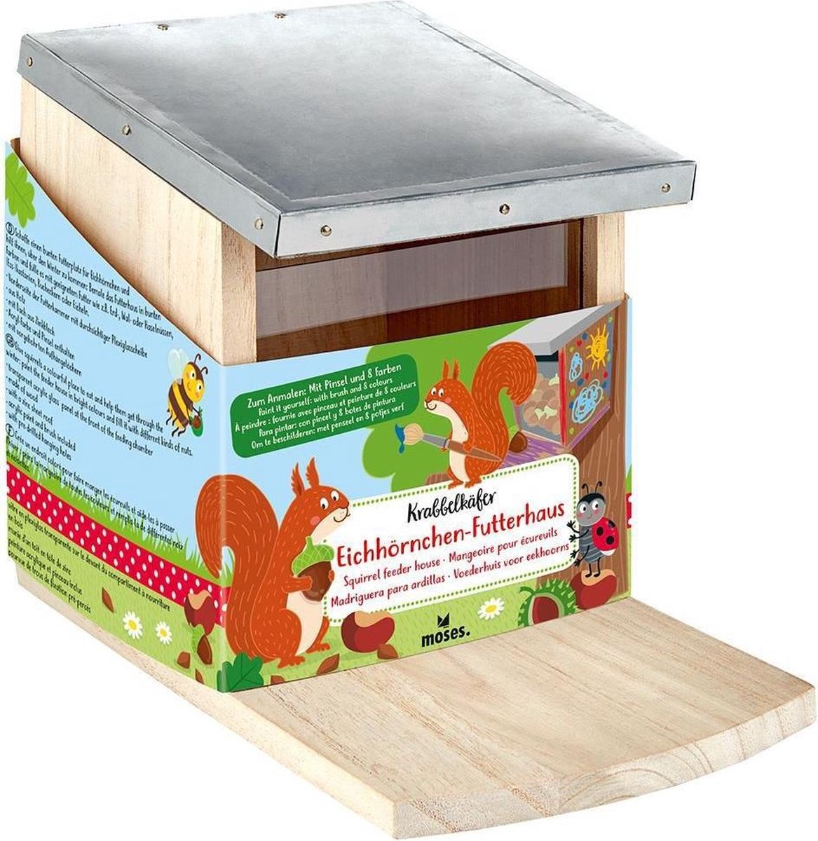 Moses schilder je eigen eekhoornvoederhuisje Maak het mooiste voederhuis met deze set van Moses zodat elke eekhoorn een hapje wil eten in jouw tuin. In de set zitten acht verschillende kleuren acrylverf en een penseel. Specificaties: Kleur: multicolor Materiaal: hout Geslacht: junior Afmetingen: 13 x 17,3 x 21,7 cm (L x B x H) Leeftijd: vanaf 3 jaar Inhoud: 1 Voederhuisje 8 Kleuren acrylverf 1 Penseel