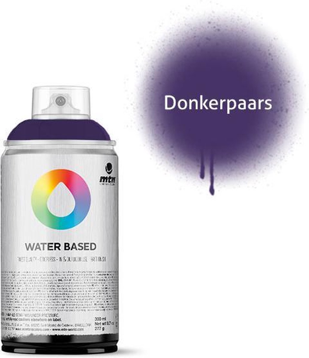 MTN Water Based 300ml Spray Paint Met een 300ml dek je gemiddeld een oppervlak van 1,5 vierkante meter. Iedere spuitbus wordt geleverd met een pocket cap, deze geeft een normale lijndikte. Deze MTN Water Based 300ml Spray Paint is perfect voor kinderen, fine-art, graffiti en andere doeleinden. Deze spuitverf is op water basis en hierdoor totaal niet giftig en 100% geurloos. Daarnaast is de spuitbus lage druk, voor veel controle en heeft de verf een matte afwerking. Deze spuitbussen zijn komen in 300ml, waardoor ze ook voor kinderhanden geschikt zijn. De verf is geurloos en dus perfect voor binnengebruik. Daarnaast is de verf zolang het nog nat is makkelijk te verwijderen met water. De droogtijd is +- 20 minuten. Geschikt voor diverse ondergronden zoals: polystyreen, hout, metaal, glas, cement etc.