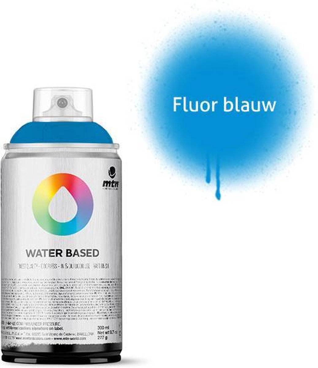 MTN Fluoriserend blauwe waterbasis spuitverf - 300ml lage druk en matte afwerking