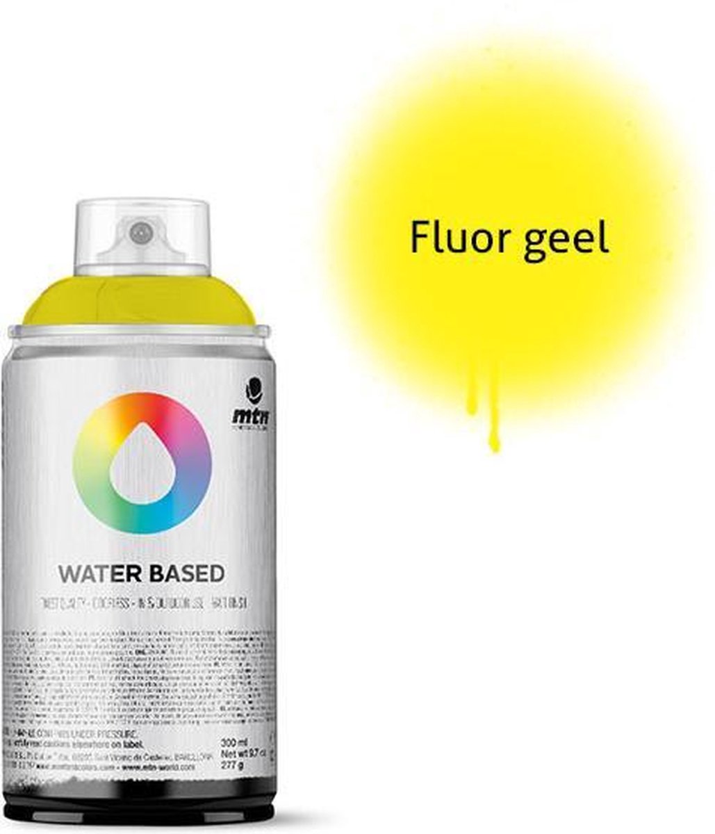MTN Water Based 300ml Spray Paint Met een 300ml dek je gemiddeld een oppervlak van 1,5 vierkante meter. Iedere spuitbus wordt geleverd met een pocket cap, deze geeft een normale lijndikte. Deze MTN Water Based 300ml Spray Paint is perfect voor kinderen, fine-art, graffiti en andere doeleinden. Deze spuitverf is op water basis en hierdoor totaal niet giftig en 100% geurloos. Daarnaast is de spuitbus lage druk, voor veel controle en heeft de verf een matte afwerking. Deze spuitbussen zijn komen in 300ml, waardoor ze ook voor kinderhanden geschikt zijn. De verf is geurloos en dus perfect voor binnengebruik. Daarnaast is de verf zolang het nog nat is makkelijk te verwijderen met water. De droogtijd is +- 20 minuten. Geschikt voor diverse ondergronden zoals: polystyreen, hout, metaal, glas, cement etc.