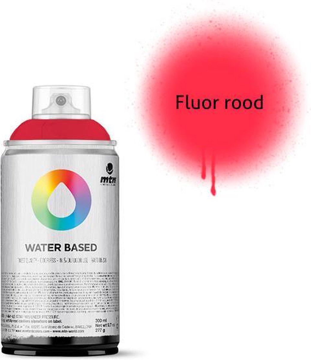 MTN Water Based 300ml Spray Paint Met een 300ml dek je gemiddeld een oppervlak van 1,5 vierkante meter. Iedere spuitbus wordt geleverd met een pocket cap, deze geeft een normale lijndikte. Deze MTN Water Based 300ml Spray Paint is perfect voor kinderen, fine-art, graffiti en andere doeleinden. Deze spuitverf is op water basis en hierdoor totaal niet giftig en 100% geurloos. Daarnaast is de spuitbus lage druk, voor veel controle en heeft de verf een matte afwerking. Deze spuitbussen zijn komen in 300ml, waardoor ze ook voor kinderhanden geschikt zijn. De verf is geurloos en dus perfect voor binnengebruik. Daarnaast is de verf zolang het nog nat is makkelijk te verwijderen met water. De droogtijd is +- 20 minuten. Geschikt voor diverse ondergronden zoals: polystyreen, hout, metaal, glas, cement etc.