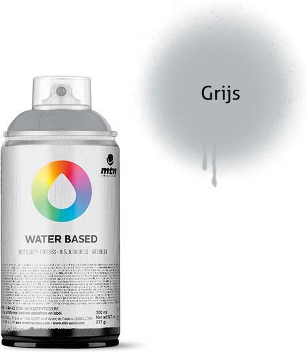 MTN Water Based 300ml Spray Paint Met een 300ml dek je gemiddeld een oppervlak van 1,5 vierkante meter. Iedere spuitbus wordt geleverd met een pocket cap, deze geeft een normale lijndikte. Deze MTN Water Based 300ml Spray Paint is perfect voor kinderen, fine-art, graffiti en andere doeleinden. Deze spuitverf is op water basis en hierdoor totaal niet giftig en 100% geurloos. Daarnaast is de spuitbus lage druk, voor veel controle en heeft de verf een matte afwerking. Deze spuitbussen zijn komen in 300ml, waardoor ze ook voor kinderhanden geschikt zijn. De verf is geurloos en dus perfect voor binnengebruik. Daarnaast is de verf zolang het nog nat is makkelijk te verwijderen met water. De droogtijd is +- 20 minuten. Geschikt voor diverse ondergronden zoals: polystyreen, hout, metaal, glas, cement etc.