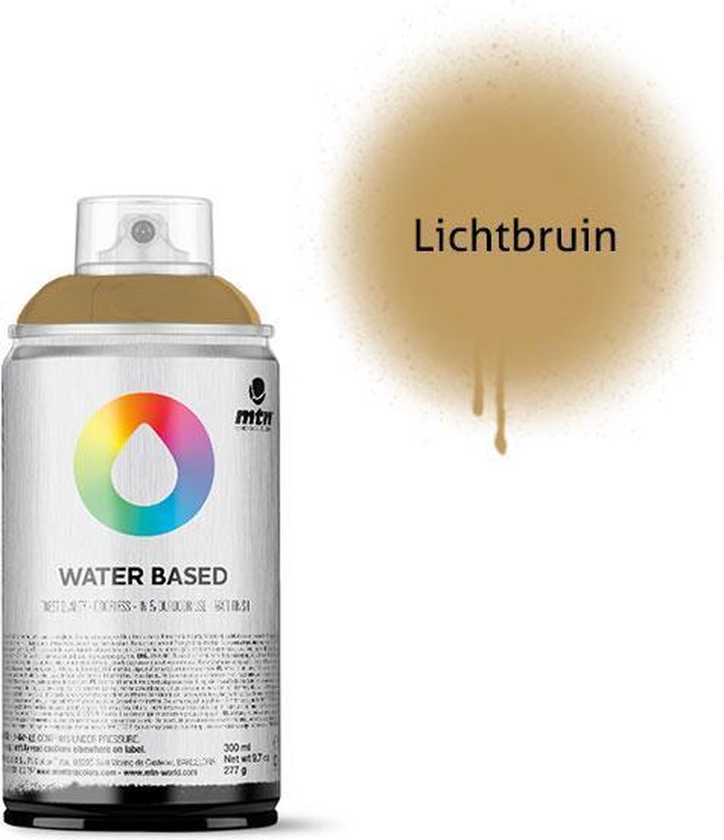 MTN Water Based 300ml Spray Paint Met een 300ml dek je gemiddeld een oppervlak van 1,5 vierkante meter. Iedere spuitbus wordt geleverd met een pocket cap, deze geeft een normale lijndikte. Deze MTN Water Based 300ml Spray Paint is perfect voor kinderen, fine-art, graffiti en andere doeleinden. Deze spuitverf is op water basis en hierdoor totaal niet giftig en 100% geurloos. Daarnaast is de spuitbus lage druk, voor veel controle en heeft de verf een matte afwerking. Deze spuitbussen zijn komen in 300ml, waardoor ze ook voor kinderhanden geschikt zijn. De verf is geurloos en dus perfect voor binnengebruik. Daarnaast is de verf zolang het nog nat is makkelijk te verwijderen met water. De droogtijd is +- 20 minuten. Geschikt voor diverse ondergronden zoals: polystyreen, hout, metaal, glas, cement etc.