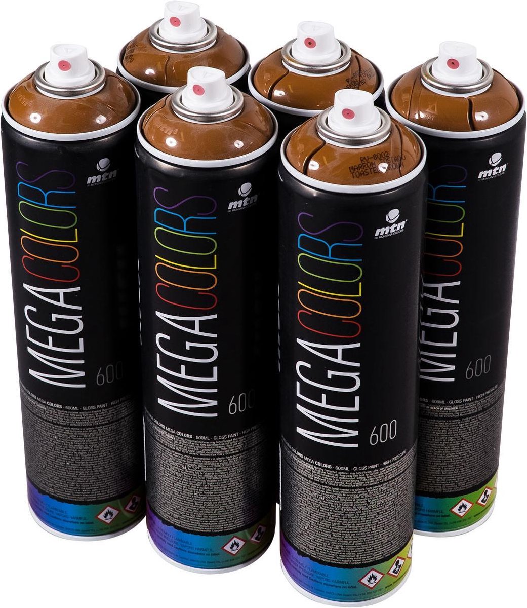 MTN Mega Colors - 6x Bruine spuitbus pakket - 6 stuks 600ml spuitverf - Hoge dekking, glossy afwerking