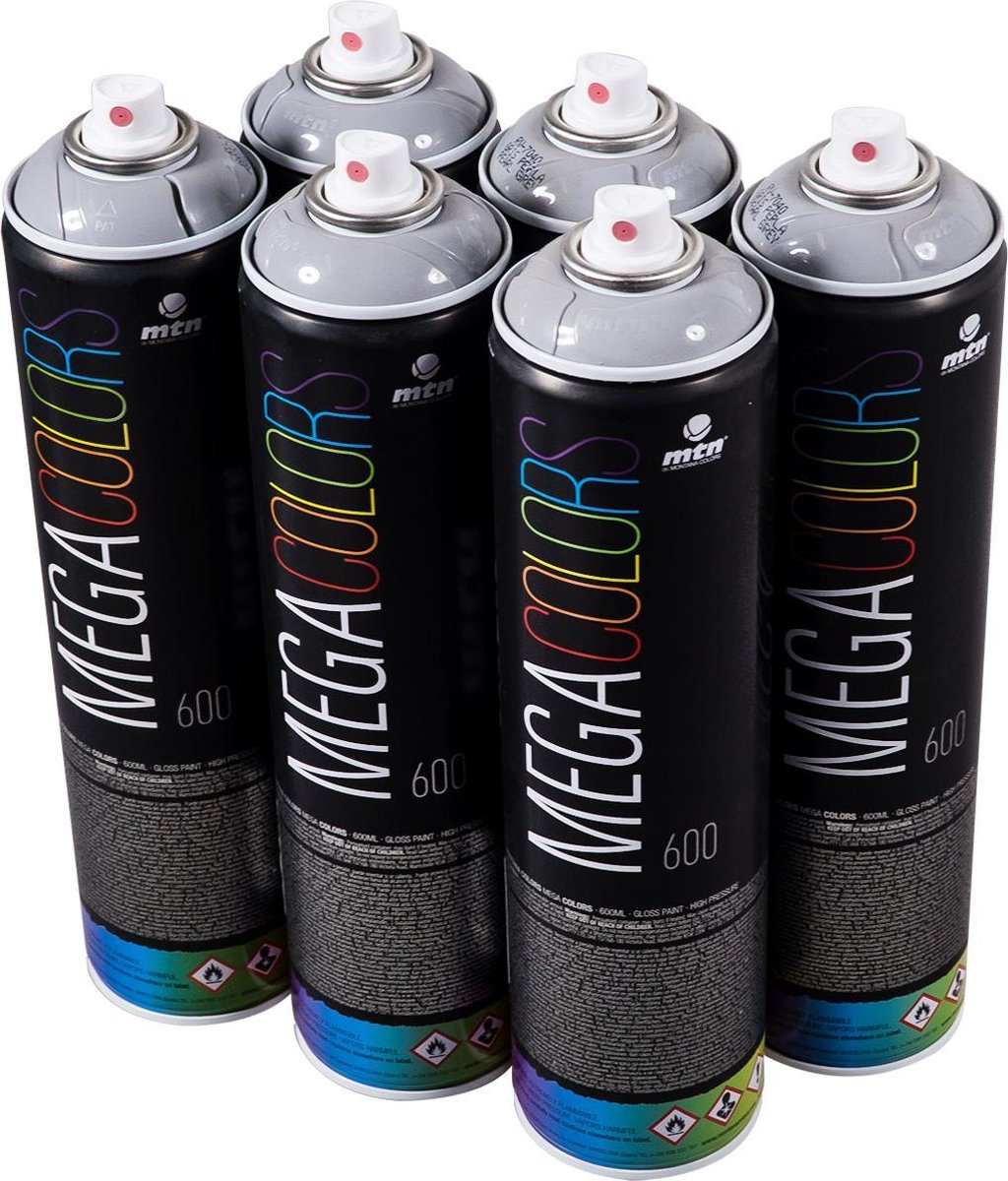 MTN Mega Colors - 6x Grijze spuitbus pakket - 6 stuks 600ml spuitverf - Hoge dekking, glossy afwerking
