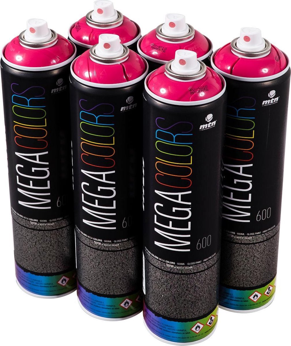 MTN Mega Colors - 6x Magenta spuitbus pakket - 6 stuks 600ml spuitverf - Hoge dekking, glossy afwerking