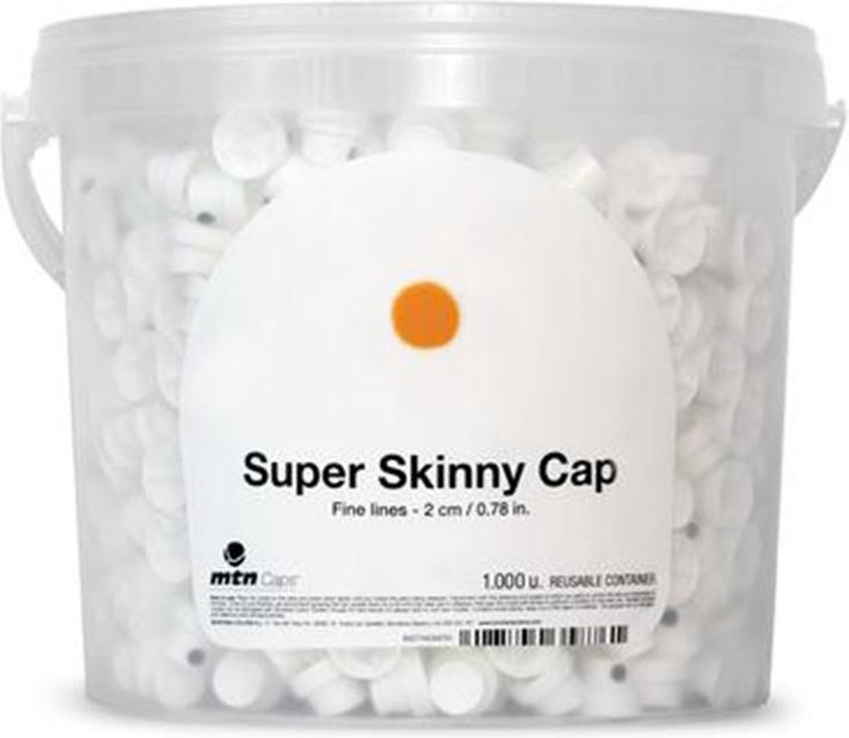 MTN Super Skinny Cap – emmer van 1000 stuks De Super Skinny is precies zoals het klinkt. Het produceert de dunste lijnen, ongeveer 0,5 inch breed. Goed voor fijne details en contouren.