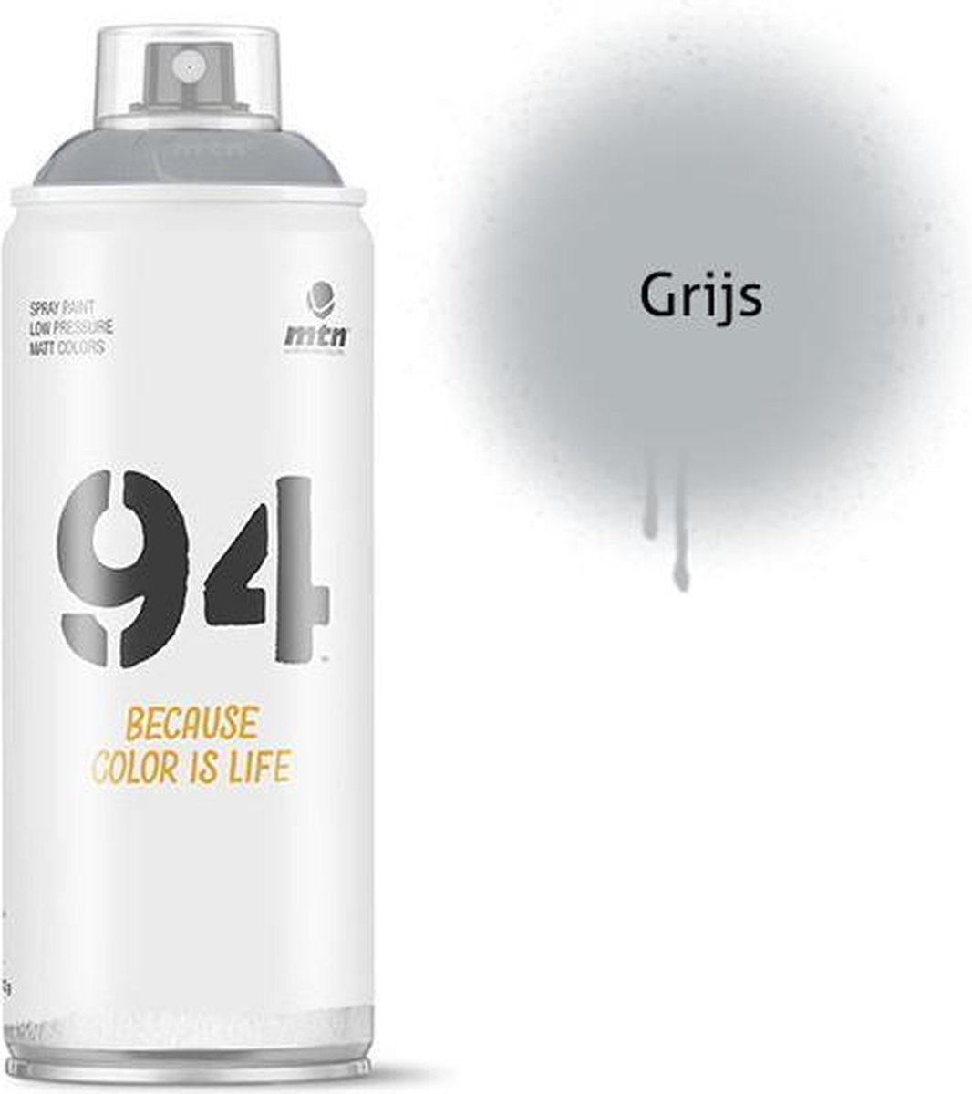 MTN94 Grijze spuitbus - 400ml lage druk en matte afwerking spuitverf - Graffiti verf voor vele doeleinden zoals voor diy, klussen, graffiti, hobby en kunst