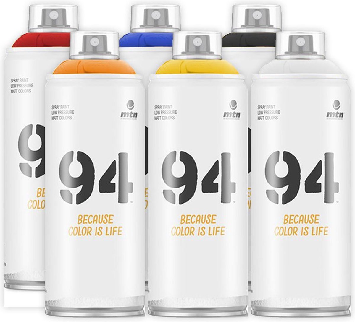 Dit pakket bevat 6 spuitbussen in de kleuren zwart, wit, blauw, geel, oranje en rood. De MTN94 spuitbussen 400 ml paint behoren tot de beste spuitverf op de markt, voor een een zeer lage prijs. Vanwege de low pressure ofwel lage druk, heb je erg veel controle over de MTN94 graffiti cans. De MTN94 spray paint heeft een matte afwerking en elke kleur heeft een unieke bijpassende geur. Montana Colors wordt gemaakt in Barcelona en wordt speciaal voor artiesten ontwikkeld. Waar de Duitse Montana eigendom van de gigant Motip is, is de Spaanse (echte) Montana onafhankelijk. Hier draait het om passie, om de beste graffiti verf te produceren. Elke bus wordt geleverd met een MTN Pocket cap.