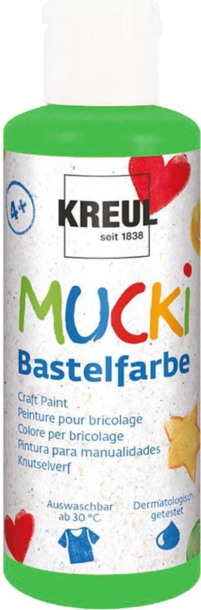 MUCKI knutselverf is de beste keuze voor kinderen vanaf 4 jaar. De verf is gemakkelijk aan te brengen met kwasten en heeft als het is opgedroogd een matte afwerking. Deze verf leert kinderen kleuren mengen, schilderen met sjablonen of laat ze experimenteren met andere verftechnieken. Als de verf in kleding gaat zitten is het er makkelijk te verwijderen door het 30 ° C te wassen of uit te spoelen met warm water. Kenmerken - ideale verf op waterbasis voor kinderen - gemakkelijke applicatie, goede dekking, gemakkelijk mengen en snel drogen - de kleuren kunnen gemakkelijk worden gewassen bij temperaturen boven 30 ° C - geschikt voor het schilderen op papier, karton, canvas, hout, steen, terracotta, modelleermaterialen, glas en andere oppervlakken - de huid is gemakkelijk schoon te maken en te wassen - niet geschikt voor kinderen jonger dan 3 jaar - dermatologisch getest - bevat geen parabenen, lactose, gluten, het is geschikt voor veganisten
