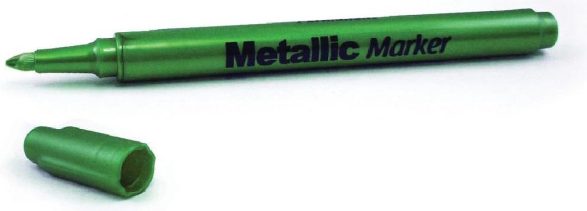 Multicraft Imports-Metallic Permanent Marker 1.2mm Fine Point. For both light and dark surfaces, a brilliant opaque sheen on paper, plastic, metal, wood, cloths, ceramics, glass and more! Each marker is designed to give you a striking metallic effect visible on all backgrounds, even black! Great for card making, scrapbooking and DIY projects. This package contains one 5-1/2 inch long 1.2mm fine point marker