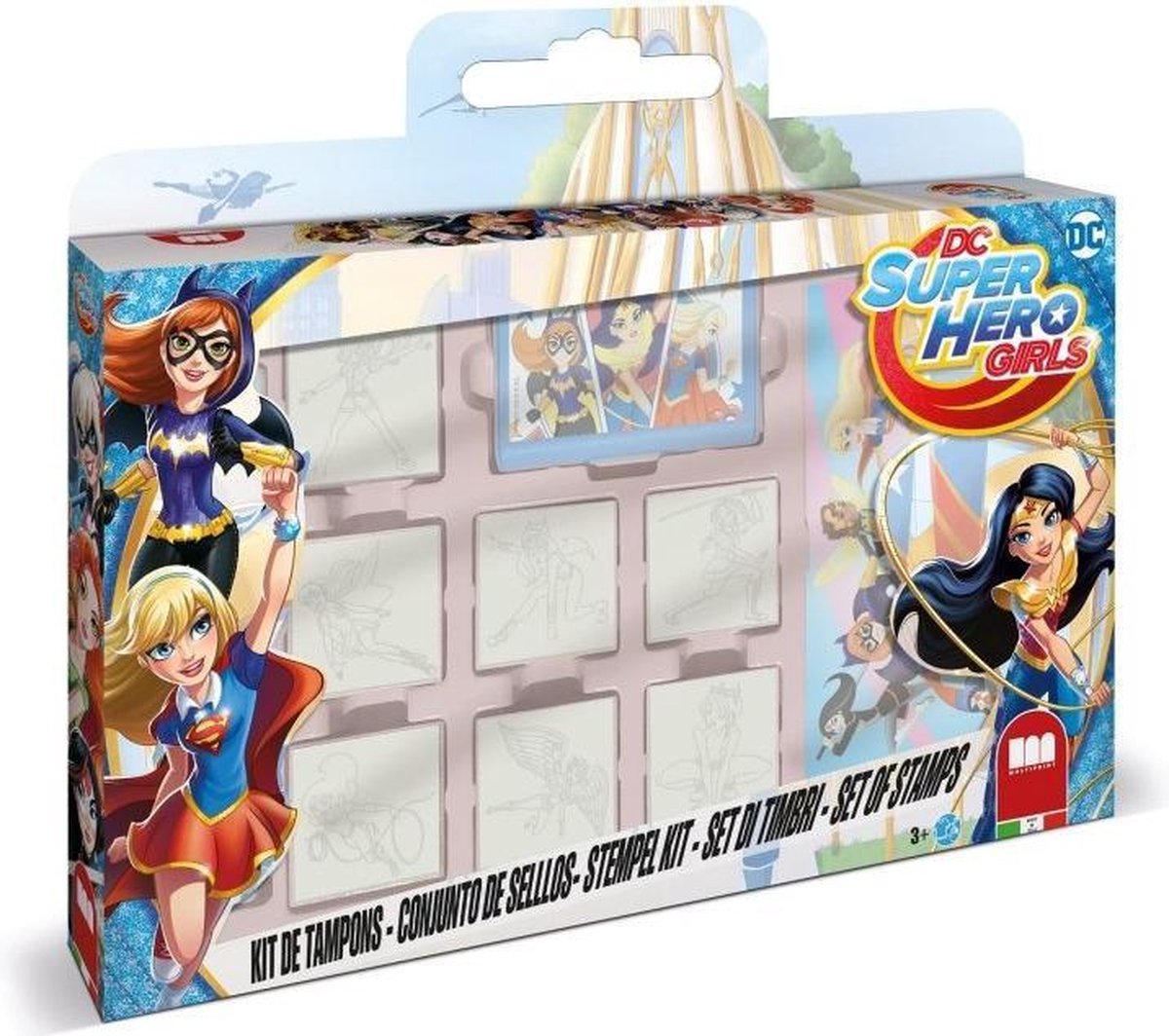 Multiprint kleurset Kleuren en stempelen wordt een feestje met jouw vriendinnen van DC Super Hero Girls! De set bestaat uit zeven houten stempels, een stempelkussen, drie stiften en een notitieblokje! Specificaties: Kleur: multicolor Geslacht: meisjes Materiaal: kunststof, hout Afmetingen verpakking: 32 x 23 x 3 cm (L x B x H) Leeftijd: vanaf 3 jaar Inhoud: 7 Stempels 3 Stiften 1 Stempelkussen 1 Notitieblokje