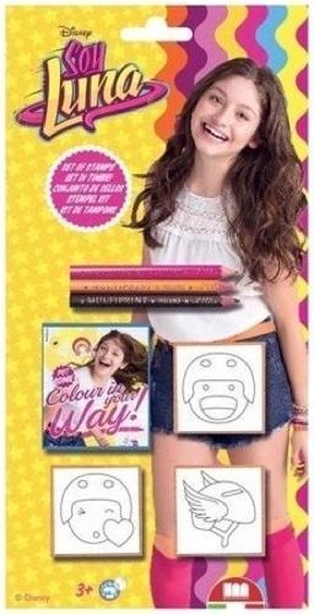 Multiprint kleurset Soy Luna Zet één van de drie Soy Luna-stempels op papier en kleur het daarna in met de bijgeleverde potloden. De houten stempels zijn van een goede kwaliteit zodat urenlang knutselplezier gegarandeerd is! Specificaties: Kleur: geel Geslacht: meisjes Materiaal: hout, kunststof Afmetingen stempel: 45 x 45 mm (L x B) Lengte potlood: 90 mm Leeftijd: vanaf 3 jaar Inhoud: 3 Houten stempels 3 Kleurpotloden 1 Stempelkussen