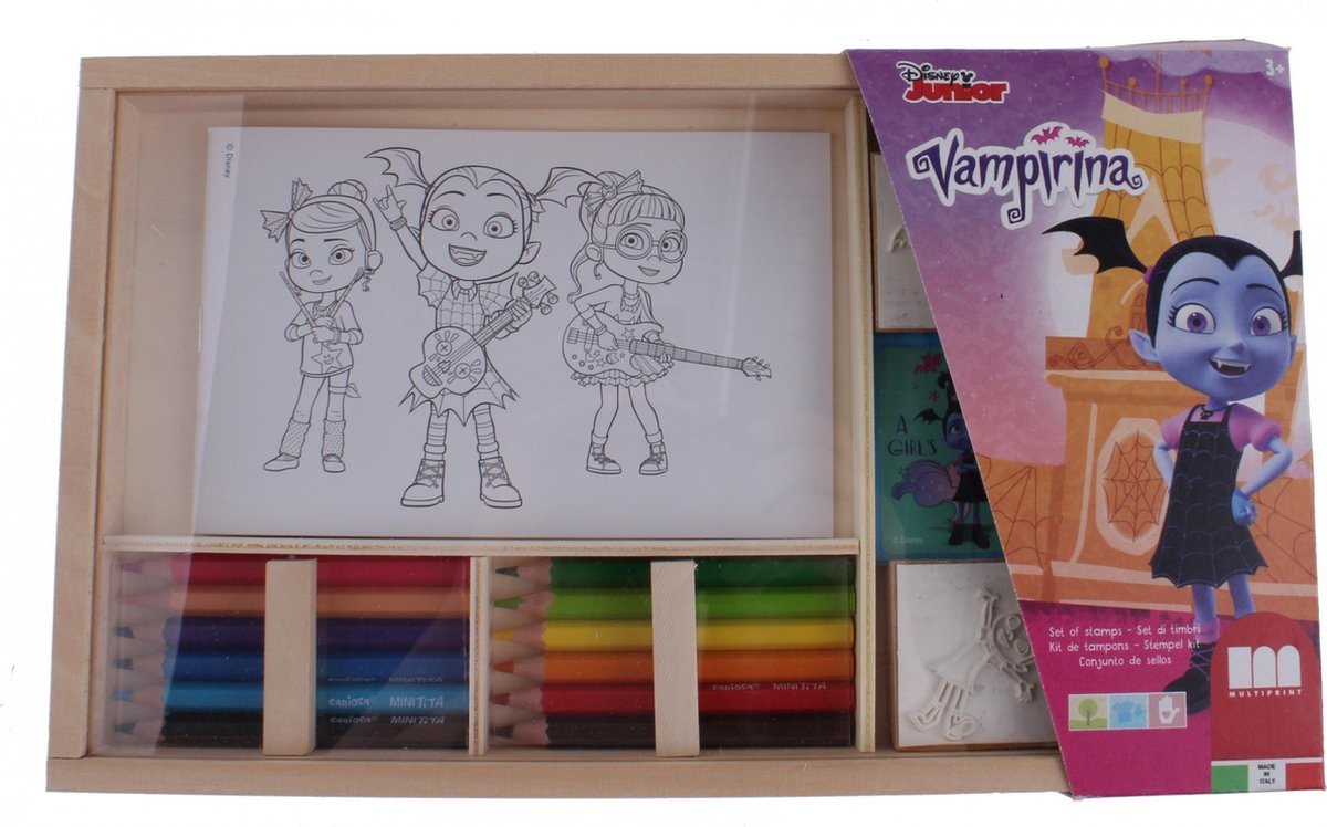 Multiprint kleurset Heb urenlang stempel- en tekenplezier met deze kleurset. In de set zitten vijf stempels, één stempelkussen en 12 kleurpotloden om de tekeningen in te kleuren. Specificaties: Kleur: multicolor Geslacht: junior Materiaal: kunststof, hout Afmeting verpakking: 19,5 x 17 cm Afmetingen stempel: 4,5 x 4,5 cm Lengte potlood: 8,5 cm Leeftijd: vanaf 3 jaar Inhoud: 1 Notitieboekje 5 Houten stempels 1 Stempelkussen 12 Kleurpotloden