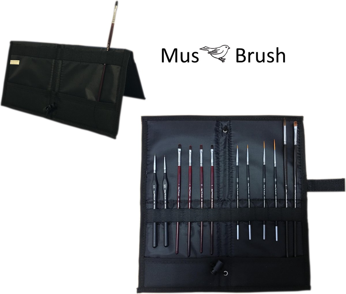 Vouw-etui met 12 Mus penselen in de kleinste maten, ideaal voor het fijne werk Geschikt voor alle technieken Inhoud etui: Serie 101 - Synthetisch- Kattentong - No. 1 & 2 Serie 201 - Synthetisch- plat - No. 1 & 2 Serie 301 Round weasel No. 2 Serie 401 round/fine Kolinsky No. 5/0 & 3/0 Serie 501 Filbert Weasel No. 2 Serie 601 fine detail - FineLiner No. 000 & 00 Serie 601 fine detail - ScriptLiner/sleper No. 000 & 00