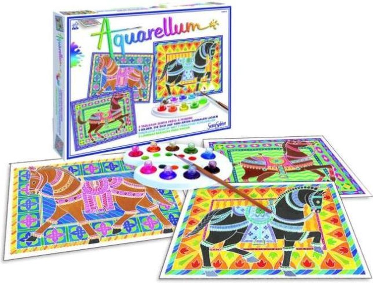 Inhoud: 3 embossed canvassen van 25 x 32 cm 9 x 5 ml vloeibare waterverf 1 palet, 1 pipetje, 1 kwast & instructies