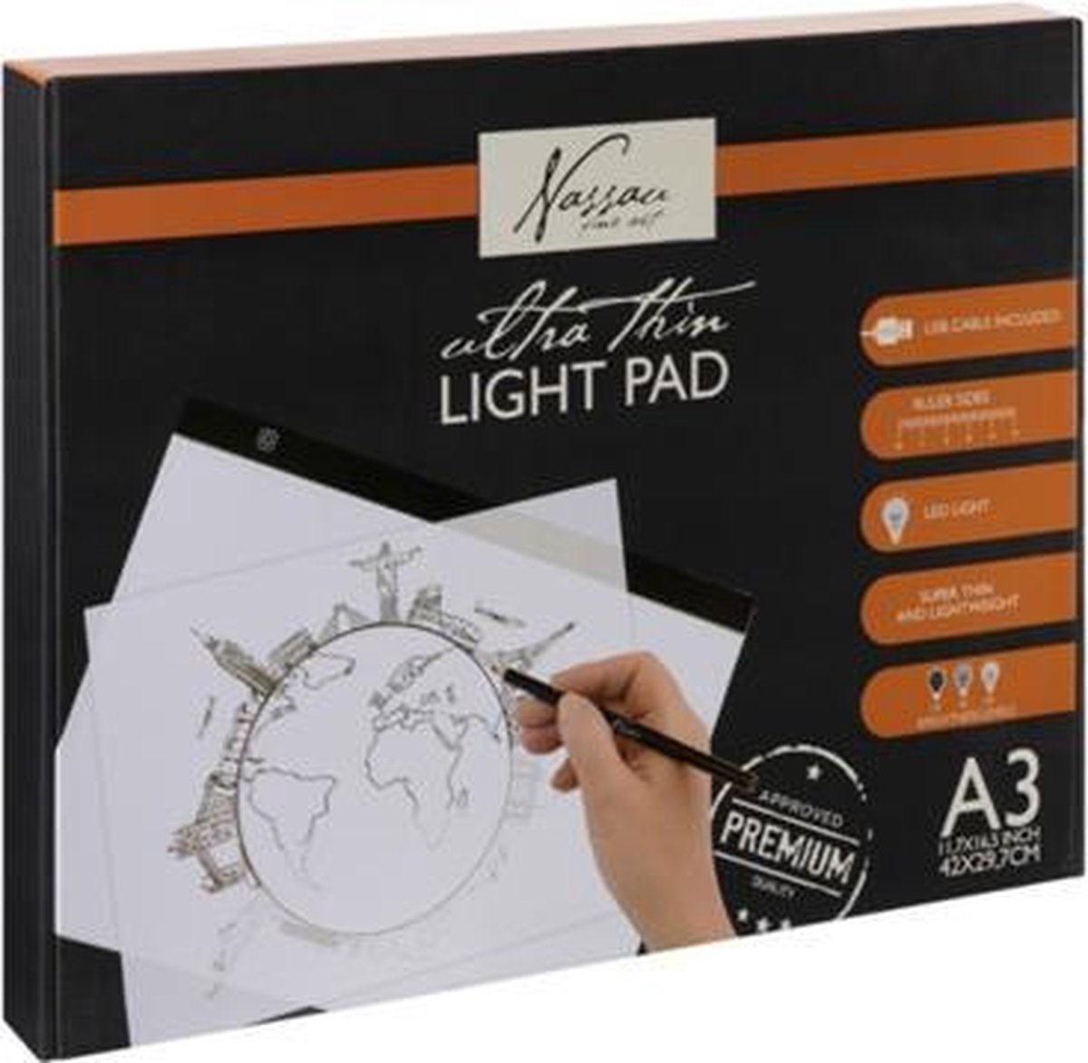 Ultra dunne lichtbak in A3 formaat en raster, met 3 lichtsterktes, aan te sluiten met USB kabel