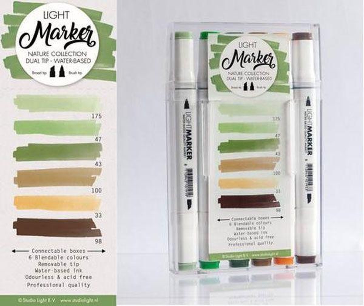 6 Nature mengbare kleuren in op elkaar aansluitbare dozen Verwijderbare tip Op water gebaseerde inkt Geurloos en zuurvrij Professionele kwaliteit