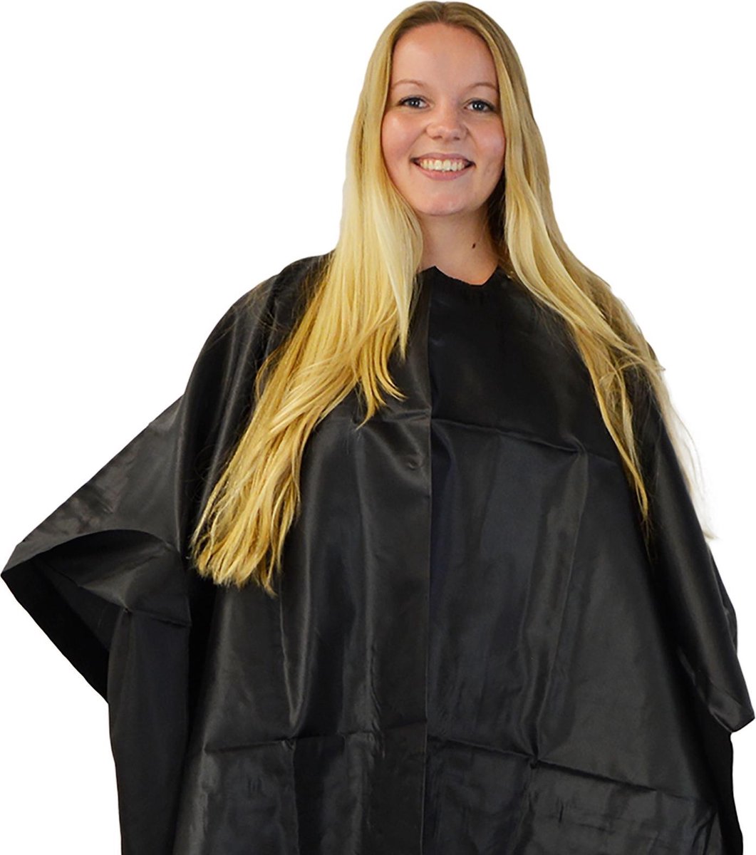 Comfortabele Kapmantel van Nebur. Een ware must have voor kappers! 3-voudige sluiting: drukkers, band en haakjes!!! Kapmantel vervaardigd uit 100% geweven nylon Luchtdoorlatend en waterafstotend Grootte: L 182 x B 150 cm Extra lange achterkant. Bestel dus gauw je Maxi kapmantel van Nebur!