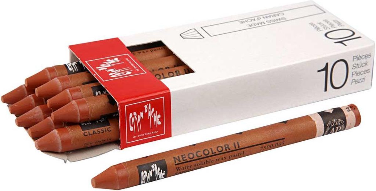 Neocolor II (10 stuks) Caran d'Ache wateroplosbaar waskrijt met hoge pigmentconcentratie en lichtvastheid - vermengt prachtig met water.