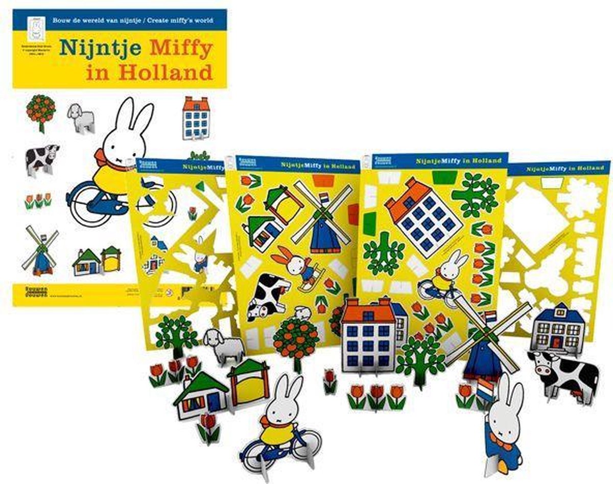 Creëer in een handomdraai de wereld van nijntje met deze stevige, kartonnen bouwplaten. Zonder gebruik van een schaar of lijm worden de platen met een simpele handeling omgevormd tot speelfiguurtjes. Deze set bestaat uit typisch Hollandse figuren zoals nijntje op de fiets, een koe, nijntje met een Hollands vlaggetje, tulpen, een molen etc. Voor deze bouwplaten zijn afbeeldingen gebruikt die bekend zijn uit de boeken van Dick Bruna. Dat maakt het voor kinderen heel herkenbaar. Met de figuren kunnen de verhalen uit de boekjes nagespeeld worden en met een beetje fantasie ontstaan eindeloos veel nieuwe avonturen. Afmetingen van de speelfiguren variëren van 3 tot 12 cm hoog Materiaal: karton Leeftijdsindicatie: vanaf 3 jaar