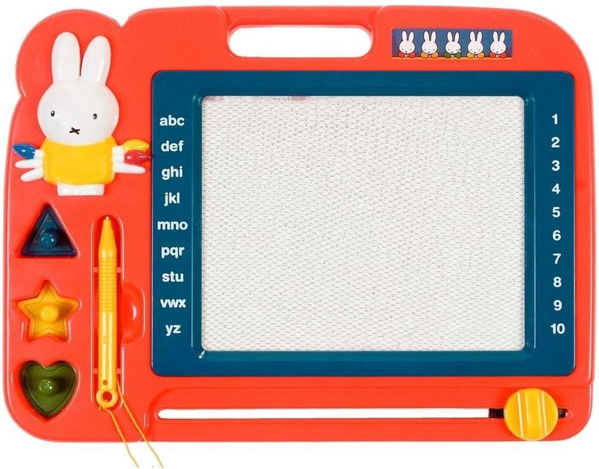 Nijntje magnetisch tekenbordmet pen en 3 stempels in verschillende vormen. Lekker tekenen zonder vieze vingers te krijgen! En wil je een nieuwe tekening maken, dan veeg je het zo weer schoon, door de knop heen en weer te halen. Geschikt voor kinderen vanaf 36 maanden.