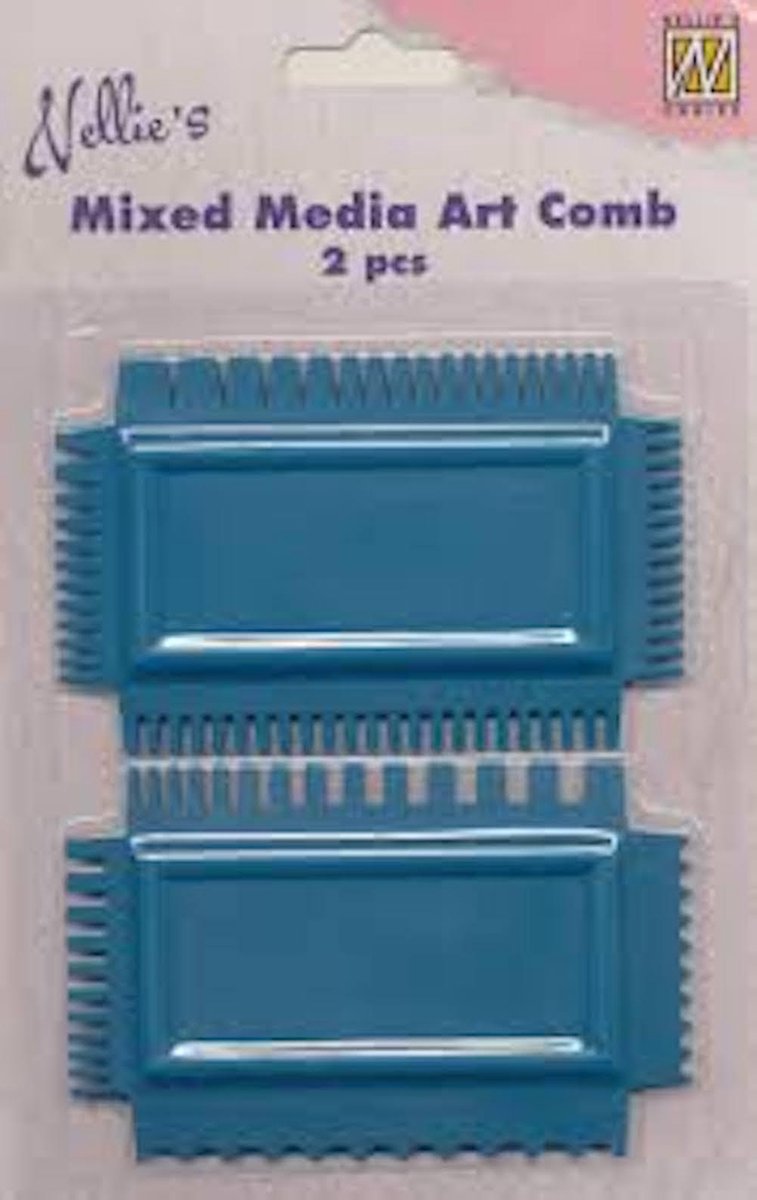 NMMC001 Nellie Snellen Art Comb - mixed media kam voor verf en inkt - 2 stuks fijn en grof - blauw