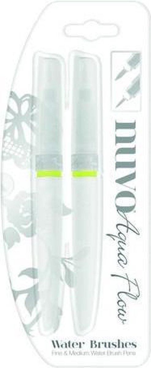 Nuvo Waterbrush navulbaar. Het lege penseel kun je vullen met water om mee te aquarelleren, of kan gevuld worden met bijvoorbeeld inkt. In de verpakking zit een Fine en Medium brushpen. Let op! Voor gebruik eerst de gele ring verwijderen.