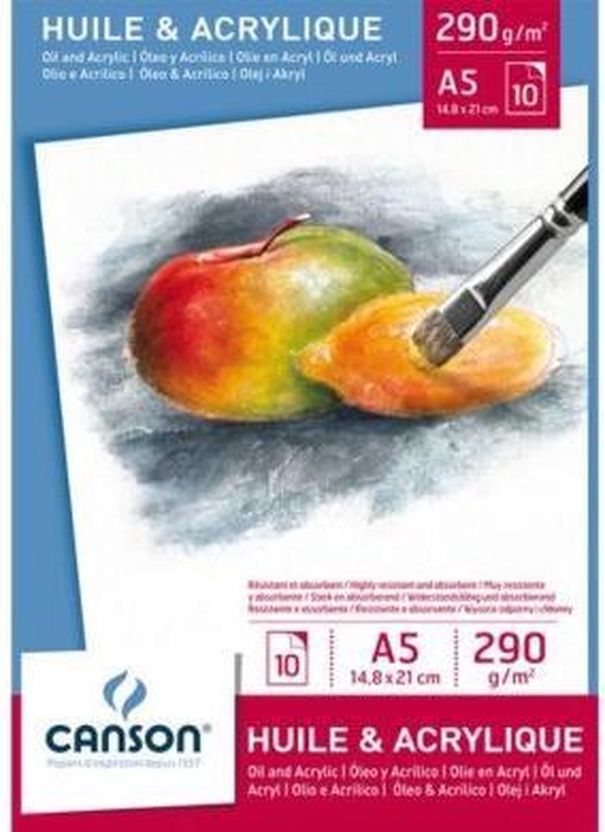 Blok aan de korte zijde gelijmd Canson papier voor olie- en acrylverf. Fijne korrel en hoog grammage (290g/m².) waardoor het stevig en absorberend is. Blok à 10vel.