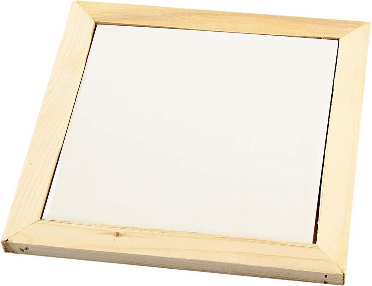 Onderzetter van wit porselein met houten lijst (dikte 5 mm).Onderzetter van wit porselein met houten lijst (dikte 5 mm).