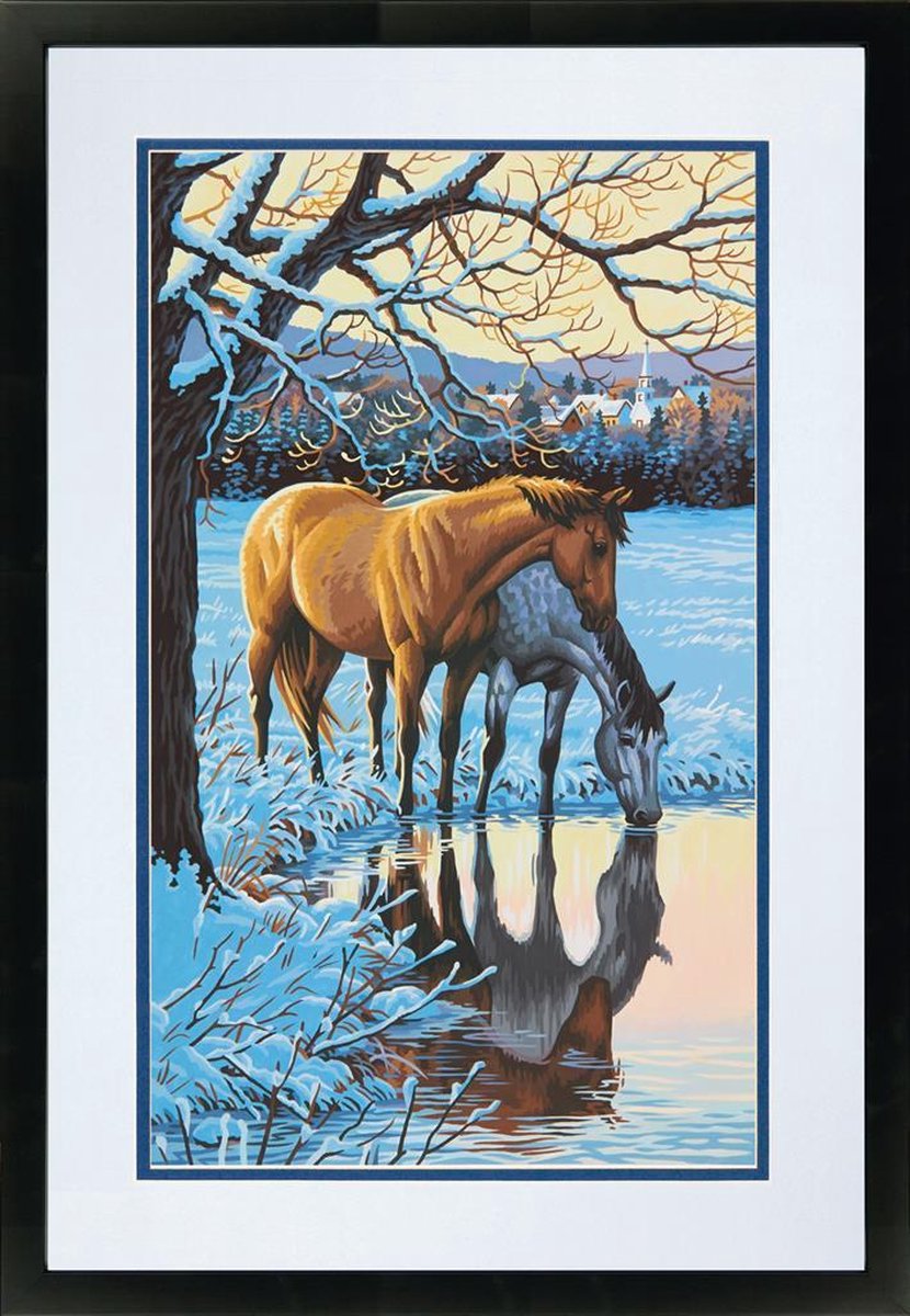 Paarden aan het drinken Schilderen op nummer. Je maakt Schilder op nummer schilderij in het formaat . Je ontvangt een los canvas met daarop enkel de lijnen en nummers. Door de genummerde vlakken in te schilderen met de juiste kleuren verf, creëer je je eigen schilderij. Door jou geschilderd met schilder op nummer! Dit schilderij wordt geleverd inclusief: -Canvas met lijnen en nummers -Voldoende potjes en kleuren acrylverf -Penseel. Schilderijen kunnen licht afwijken van de productafbeelding.