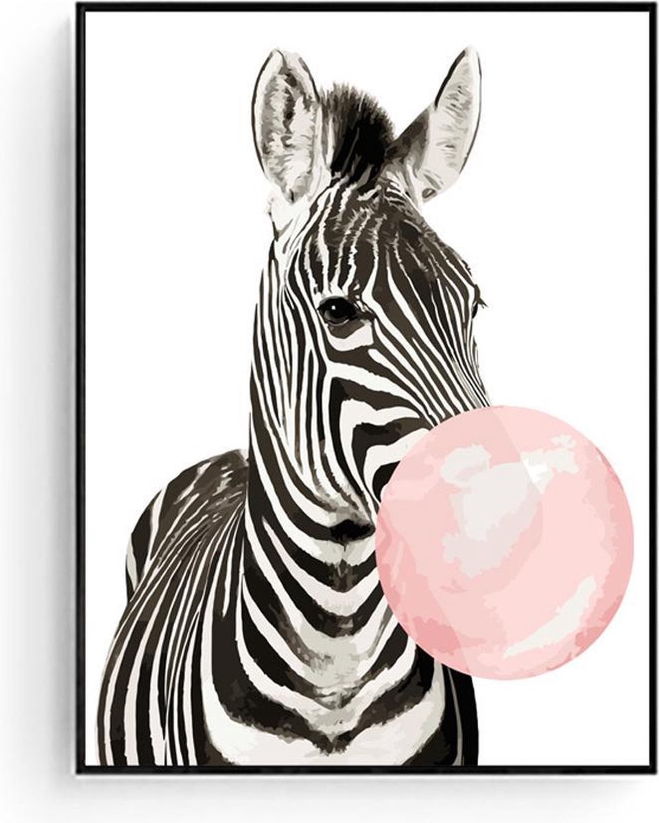 Heerlijk ontspannen een schilderij maken zonder al te veel na te denken? Dat kan met een ‘paint by number’ schilderij. Wat zit er in de doos? Canvasdoek met genummerde vakjes Alle kleuren acrylverf die nodig zijn om het schilderij te voltooien Kwasten Dit prachtige design van een Zebra met kauwgom maak je eenvoudig zelf. Het aangeleverde canvas bevat genummerde vakjes die aangeven welke kleur verf in welk vakje moet. De verfpotjes zijn genummerd voor een makkelijke workflow. Kiezen voor paint by number omdat; Het heeft een ontspannende werking Makkelijk om te doen, met prachtig resultaat Wanneer het project afgerond is heeft u een prachtig decoratiestuk Iedereen kan dit maken. Houd er rekening mee; Dat u de potjes na gebruik goed dichtdrukt, zo voorkomt u uitdrogen van de verf. Kleuren kunnen iets afwijken. Dit pakket bevat geen frame. Veel ontspannend schilderplezier gewenst!