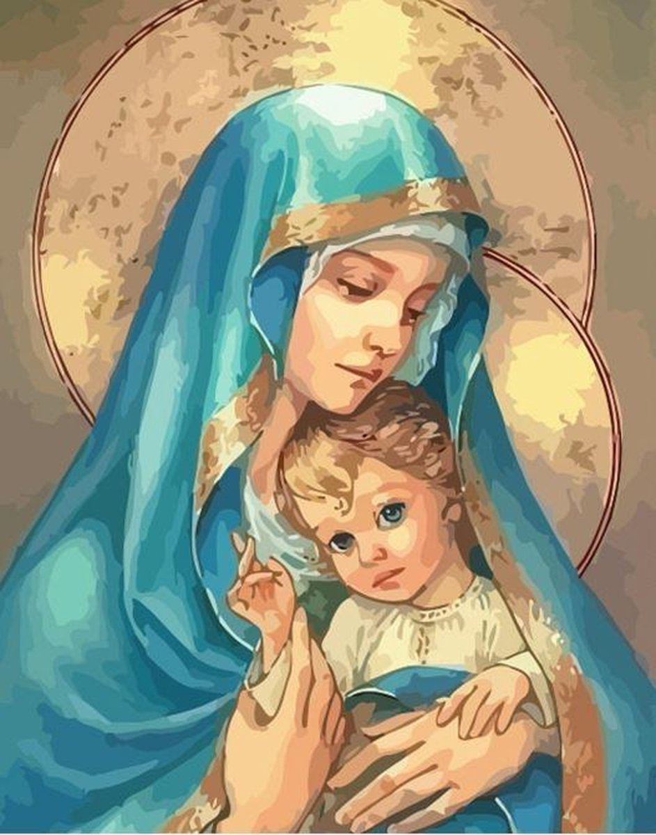 Paint By Numbers - Schilderen op Nummer - Heiligen Moeder en Zoon - 50x40cm - Volwassenen & Kinderen - Stipco