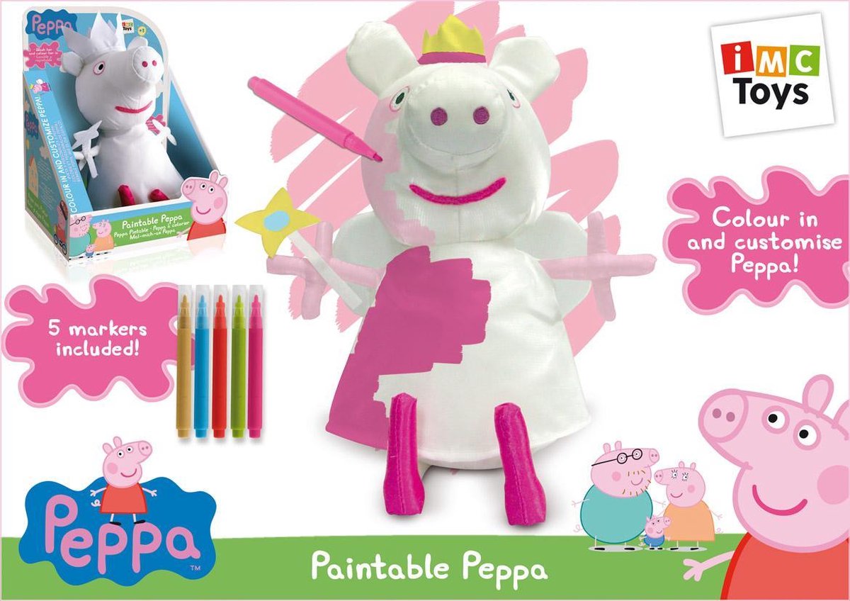 Teken en personaliseer Peppa Pig zoals je wilt met de 4 meegeleverde kleuren. Je kunt haar altijd wassen en weer kleuren. Vanaf 3 jaar.
