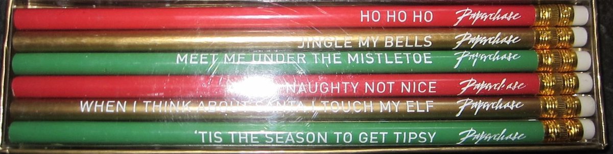 6 kerstpotloden van het merk Paperchase. Het zijn geen gekleurde potloden.
