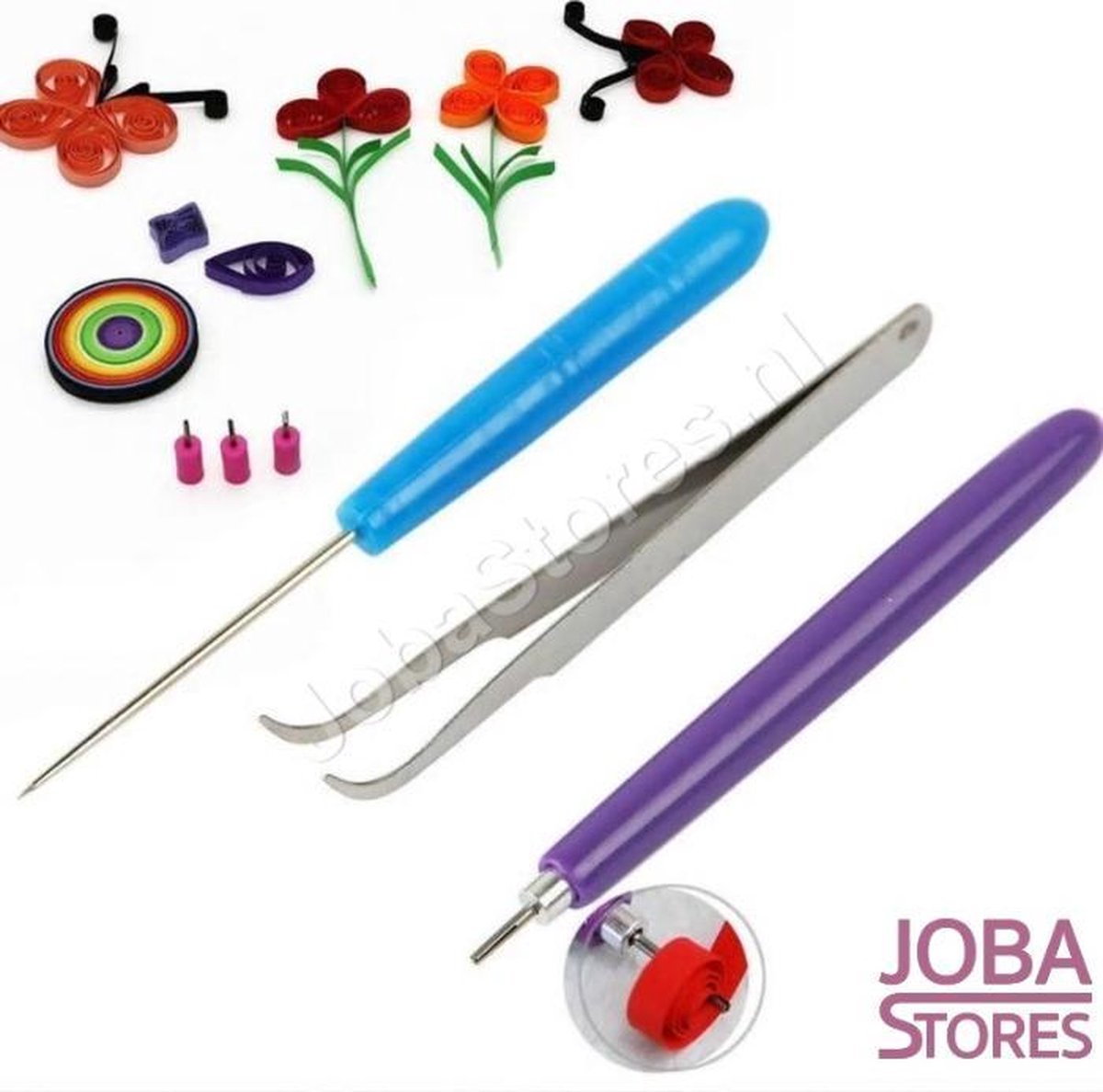Met deze papierkunst ook wel paper quilling genoemd maakt u prachtige figuren door speciaal papier te vouwen en te rollen. De Papierkunst Toolkit bevat de basis voor deze prachtige hobby. De set bevat een pincet, een papierroller en een quilling naald. Let op! Het is aan te raden om speciaal hiervoor ontworpen papier te gebruiken, u vind dit papier in ons assortiment in verschillende breedtes.