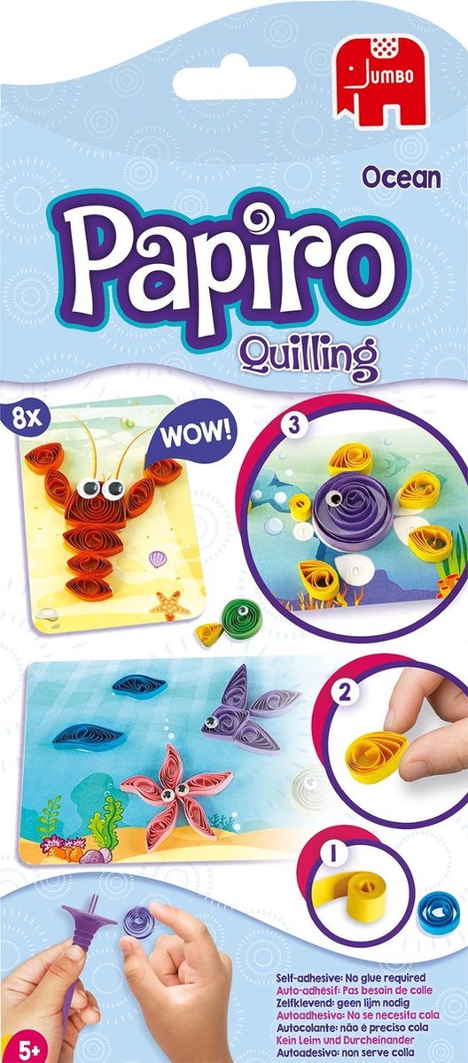 Papiro set Ocean is een superleuk set waarmee je de mooiste figuren uit de oceaan knutselt. Met deze quilling set leer je om verschillende waterdieren van papierstroken te maken. Rol de papierstrook op met behulp van de pen. Maak ze op de juiste maat en plak ze vast. Geen lijm nodig. Knijp en draai de papierrolletjes in elke gewenste vorm. Plak alle rolletjes op de zelfklevende kaart en maak het kunstwerk af met een paar grappige oogjes. Deze set kan ook in combinatie met de quilling station gebruikt worden. - 1 Quilling pen - 100 Zelfklevende papierstroken (75 kort + 25 lang) - 8 Kaarten (7 klein + 1 groot) - Maat bord - Sticker oogjes - Handleiding