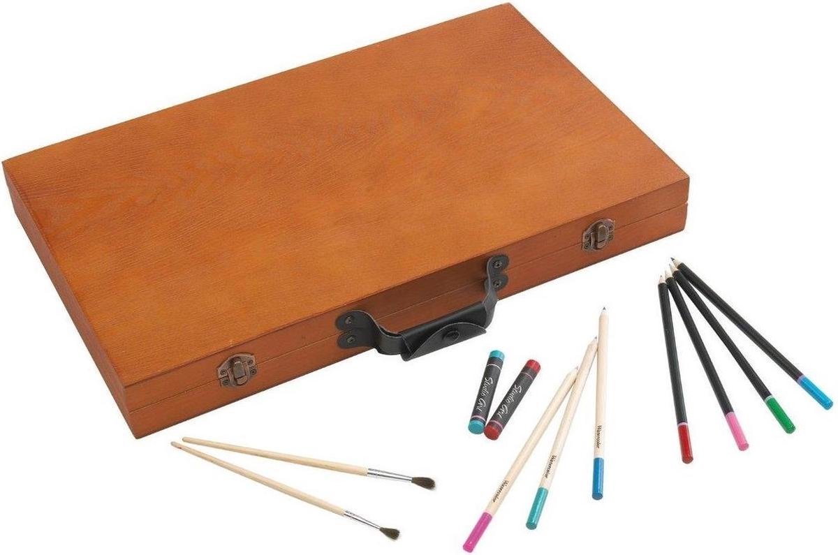 Deze veelzijdige tekenset is ideaal voor elke beginnende tekenaar maar ook ideaal voor al een gevorderd artiest. Haal de kunstenaar in jezelf naar boven met deze luxe schilder- en tekenset. Hiermee heb je alles bij de hand om de mooiste creaties te maken Inbegrepen: 24 kleurpotloden 18 watercolor potloden 2 potloden HB 2 potloden 2B 30 wasco krijtjes 1 dubbele puntenslijper (voor normale en extra dikke potloden) 2 gummen 1 sponsje 24 kleuren Waterverf 3 penselen 1 liniaal 1 nietmachine