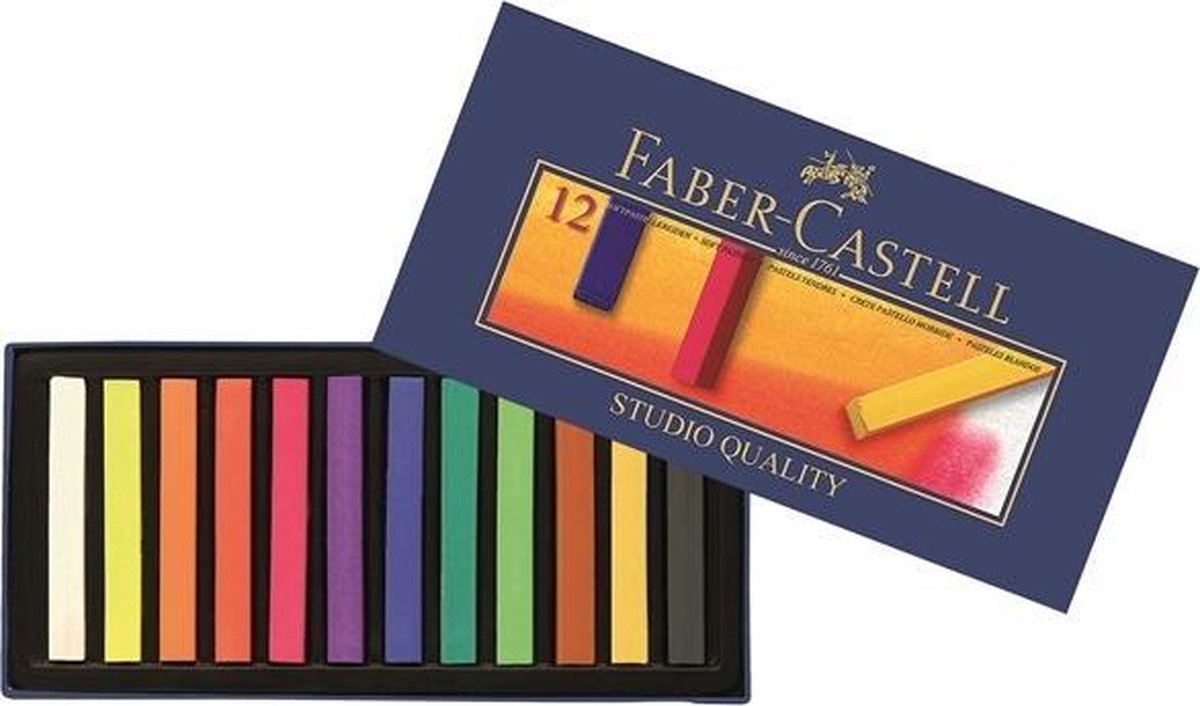 Pastelkrijt van fijne kwaliteit. Krachtige volle tinten, aangevuld door zachte tussentinten vormen een ideaal spectrum voor elke gewenste kleurstemming. Door de vierkante vorm is het mogelijk om fijne lijnen te maken of grote vlakken te vullen. Etui à 12 st.