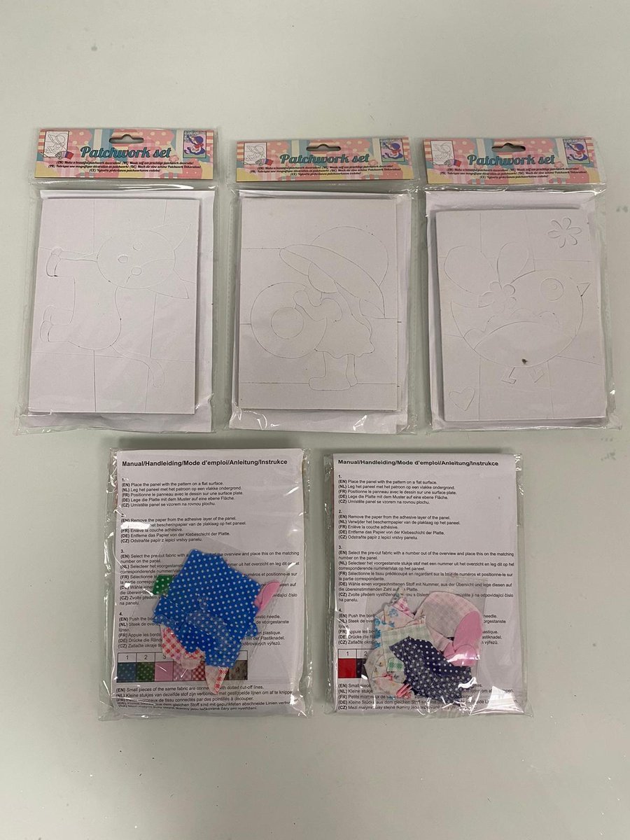 Patchwork set: maak je eigen figuur van stof! - set van 5 verpakkingen met diverse figuren (unisex), van zeer goede kwaliteit en erg leuk voor kinderen om heerlijk creatief mee bezig te zijn!
