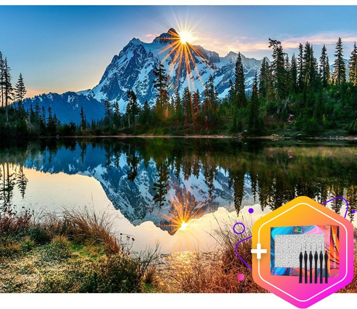 Pcasso ® Berg Bij Meer - Schilderen Op Nummer - Incl. 6 Ergonomische Penselen En Geschenkverpakking - Schilderen Op Nummer Volwassenen – Canvas Schilderdoek – Kleuren Op Nummer - 40x50 cm
