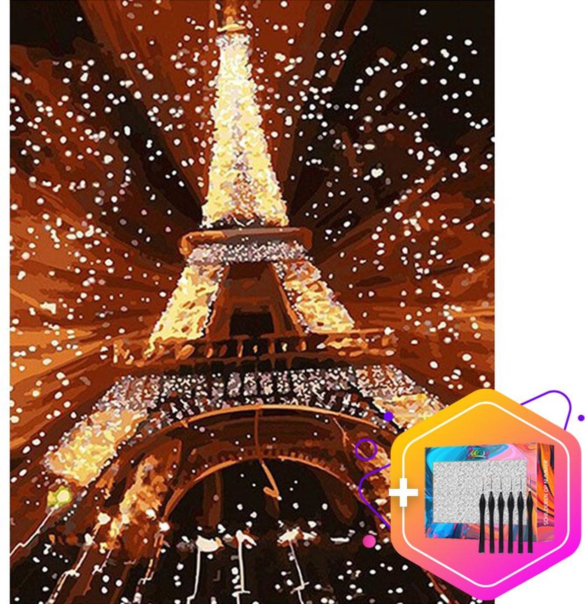 Pcasso ® Eiffeltoren Verlicht - Schilderen Op Nummer – Incl. 6 Ergonomische Penselen En Geschenkverpakking - Schilderen Op Nummer Volwassenen – Canvas Schilderdoek – Kleuren Op Nummer – 40x50 cm