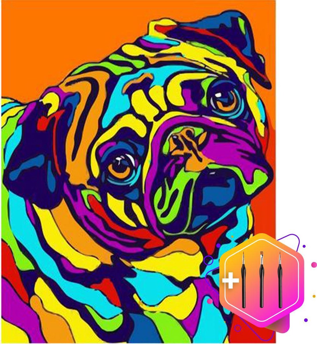Pcasso ® Mopshond – Hond - Incl. 6 Ergonomische Penselen En Geschenkverpakking - Schilderen Op Nummer – Schilderen Op Nummer Dieren - Schilderen Op Nummer Volwassenen – Canvas Schilderdoek – Kleuren Op Nummer - Paint By Number - 40x50 cm –