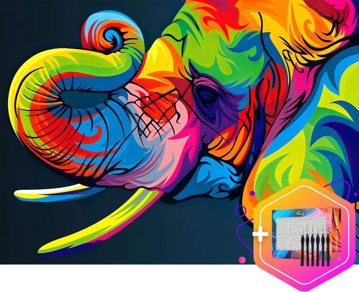 Pcasso ® Olifant Multicolor – Schilderen Op Nummer –Incl. 6 Ergonomische Penselen En Geschenkverpakking - Schilderen Op Nummer Dieren - Schilderen Op Nummer Volwassenen – Canvas Schilderdoek – Kleuren Op Nummer - Paint By Number - 40x50 cm –