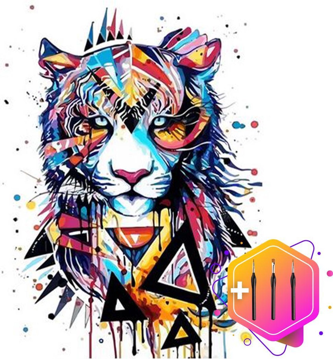 Pcasso ® Tijger Abstract – Schilderen Op Nummer – Incl. 6 Ergonomische Penselen En Geschenkverpakking - Schilderen Op Nummer Dieren - Schilderen Op Nummer Volwassenen – Canvas Schilderdoek – Kleuren Op Nummer - Paint By Number - 40x50 cm