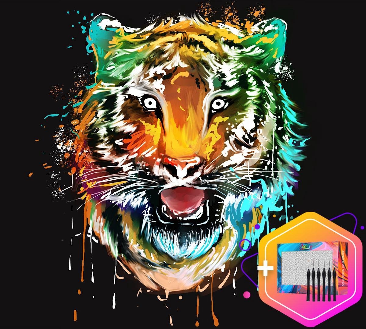 Pcasso ® Tijger Zwart Gekleurd – Schilderen Op Nummer – Schilderen Op Nummer Dieren - Schilderen Op Nummer Volwassenen – Canvas Schilderdoek – Kleuren Op Nummer - Paint By Number - 40x50 cm – Inclusief 3 Professionele Penselen