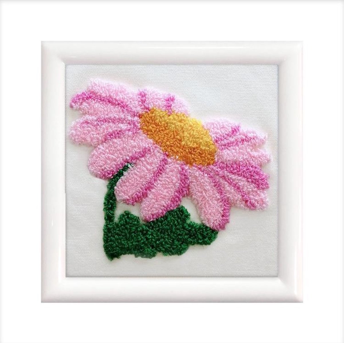 Small Punch pakket met witte frameDesign formaat: 9.5x9.5cmStof formaat 20x20cmInclusief garenPunch naaldInstructie
