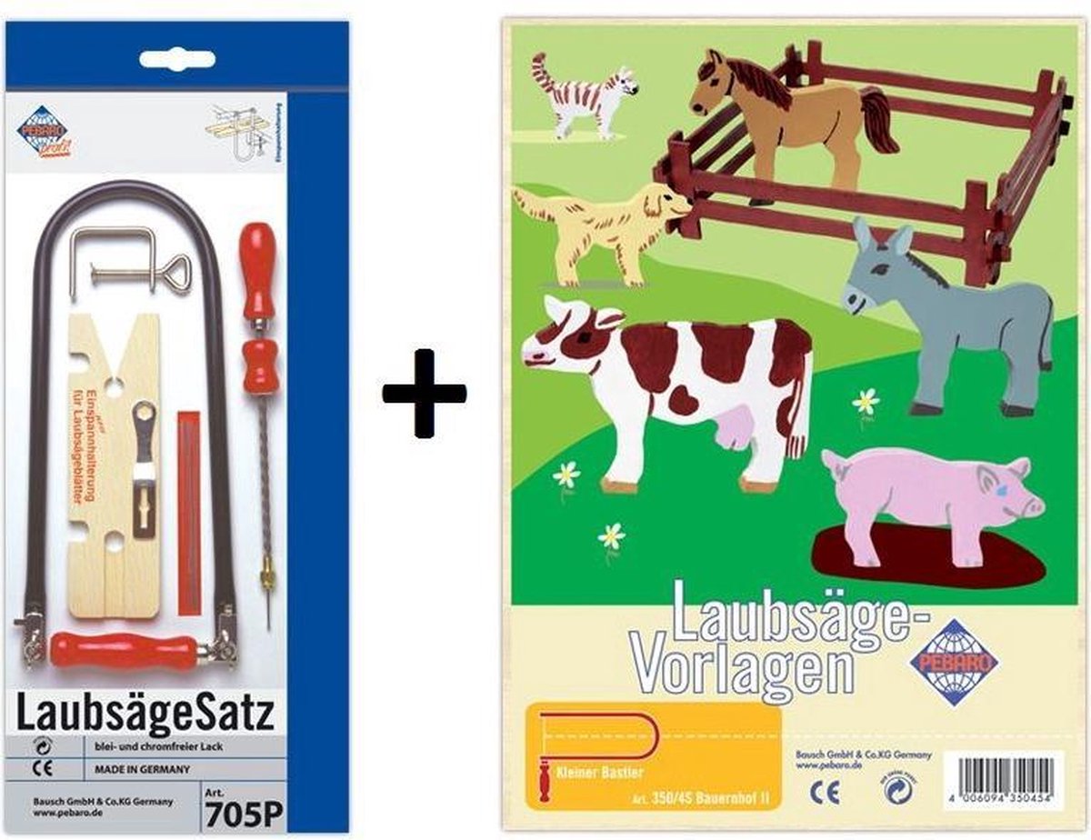In deze figuurzaagset met houten platen zit alles om te oefenen met figuurzagen. Je kan kiezen uit 3 thema's: diverse afbeeldingen, boerderijdieren en wilde dieren. Uren zaagplezier met de uitgebreide starterset. De set bevat een figuurzaagbeugel met extra zaagjes, houtklem, figuurzaagplankje, handboor, houtplaten en zaagsjablonen. De onderdelen in de figuurzaagset zijn gelakt met loodvrije en chroomvrije lak