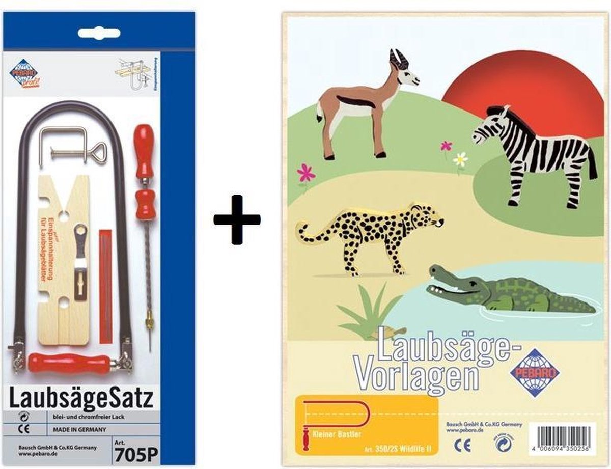In deze figuurzaagset met houten platen zit alles om te oefenen met figuurzagen. Je kan kiezen uit 3 thema's: diverse afbeeldingen, boerderijdieren en wilde dieren. Uren zaagplezier met de uitgebreide starterset. De set bevat een figuurzaagbeugel met extra zaagjes, houtklem, figuurzaagplankje, handboor, houtplaten en zaagsjablonen. De onderdelen in de figuurzaagset zijn gelakt met loodvrije en chroomvrije lak