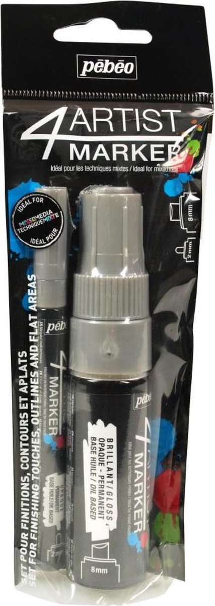Pebeo - 4Artist Markers - 2.0&8.0mm - Zilver - set 2 stuks